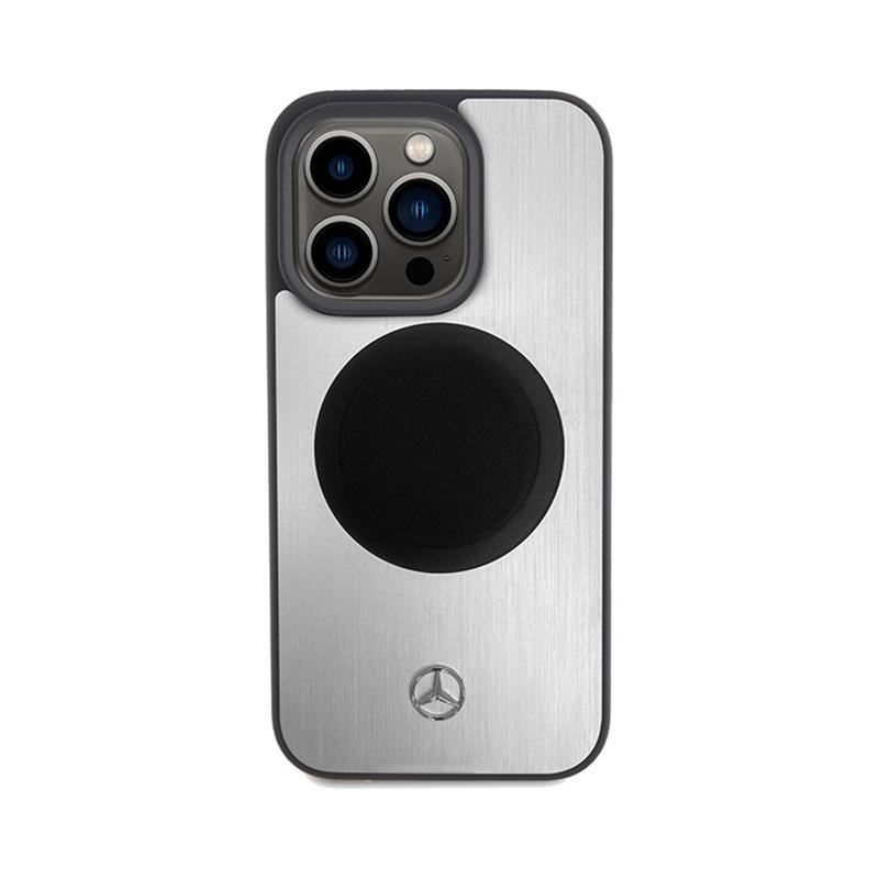 Mercedes Leather & Alu MagSafe - Case for iPhone 15 Pro Max (Silver)