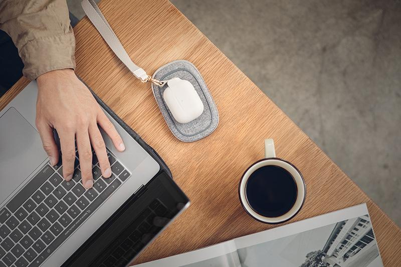 The stylish Pebbo with detachable wrist strap is a one-of-a-kind case designed for Apple AirPods headphones (3. generations). Special LintGuard™ coating prevents dust and other particles from sticking when carrying the headphone charging case in your pocket.