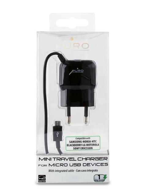 PURO Mini Travel Charger - Portable Wall Charger with Micro USB Cable (Black)