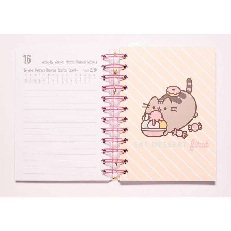 - Pusheen calendar for the 2020/2021 school year showing the image of the iconic cat. Ideal for planning and writing down notes. It has a functional and compact size and is equipped with an elastic band for fastening. The calendar comes with a d