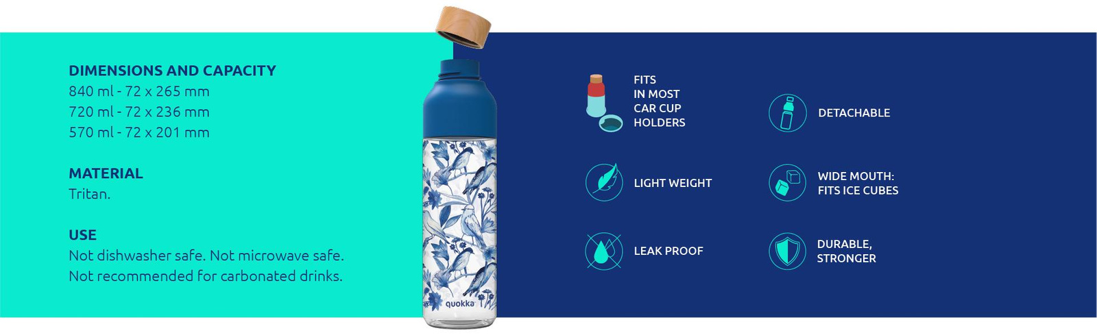 Ideal model for carrying a variety and refreshing drinks. Two-level opening allows you to freely add larger pieces of fruit and ice cubes.