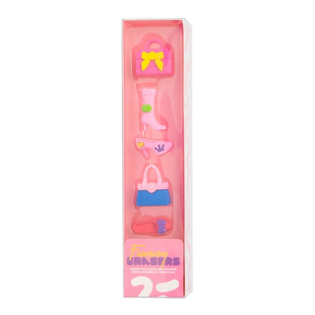 Set of erasers in original shapes. Package includes 5 rubber bands. They measure about 2-3 cm and are made of TPR.