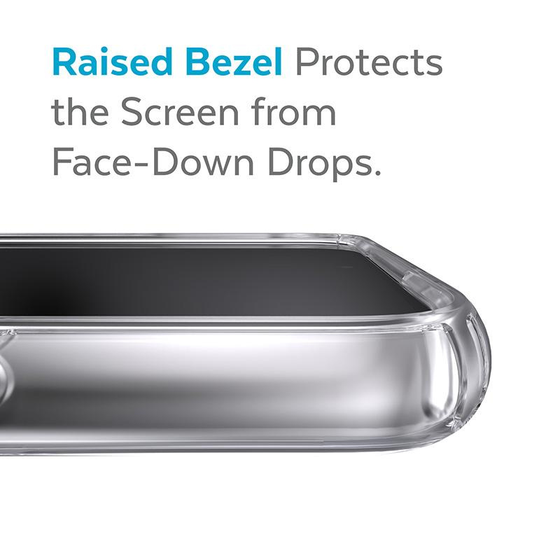The Presidio® Perfect-Clear transparent case is made of plastic that does not discolor when exposed to UV light. The special coating ensures that the Speck case does not turn yellow and looks like new at all times. The case is also drop-proof from up to 4 meters and has a raised screen bezel that provides extra protection for the phone's display.