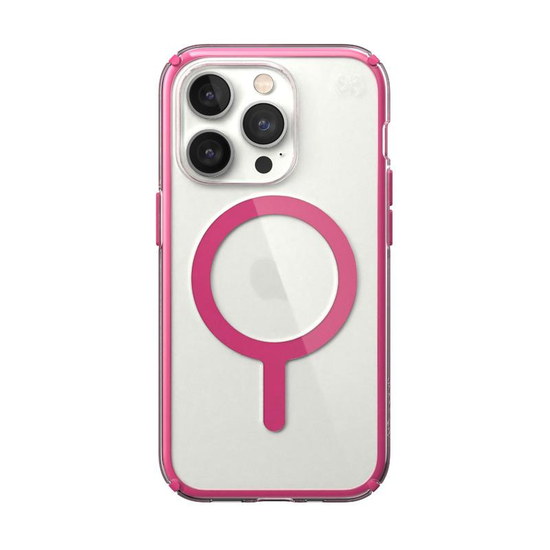 Speck Presidio Perfect-Clear with Impact Geometry® + MagSafe is a case with a built-in magnetic ring, compatible with all Apple MagSafe® accessories.