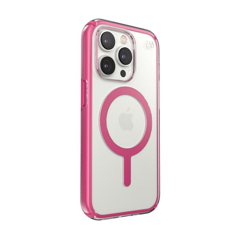 Speck Presidio Perfect-Clear with Impact Geometry + MagSafe - iPhone 14 Pro Case with MICROBAN Coating (Clear / Digital Pink)