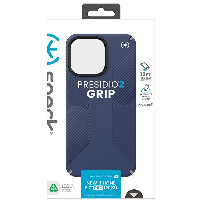 Speck Presidio2 Grip - iPhone 15 Pro Max Case (Coastal Blue / Dust Grey / White)