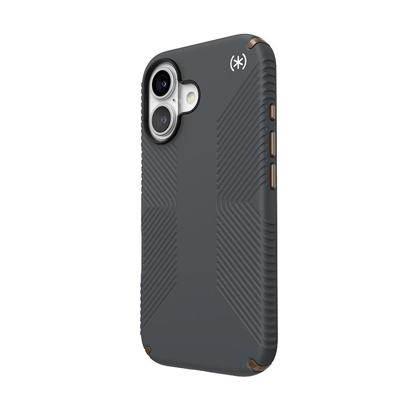 Speck Presidio2 Grip - iPhone 16 Case (Charcoal Gray / Cool Bronze / White)