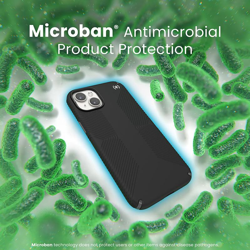 Speck's original Presidio2 Grip protective case also offers MICROBAN® antimicrobial protection (a world leader in antimicrobial solutions with a broad portfolio of over 25 approved technologies). The active ingredient built into the structure of the case stops 99% of the bacteria that accumulate on the surface of the case. MICROBAN® technology thus provides lifelong protection against stain- and odor-causing bacteria and works at the cellular level to keep the housing clean.