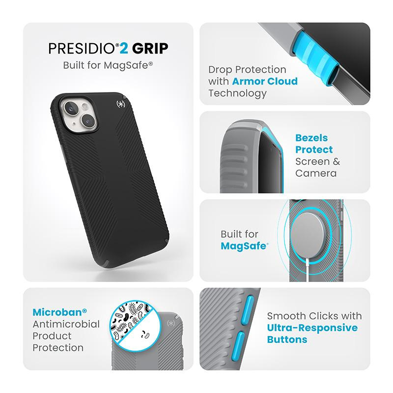 Speck Presidio2 Grip Magsafe - iPhone 15 Plus / iPhone 14 Plus Case (Black / Slate Grey / White)