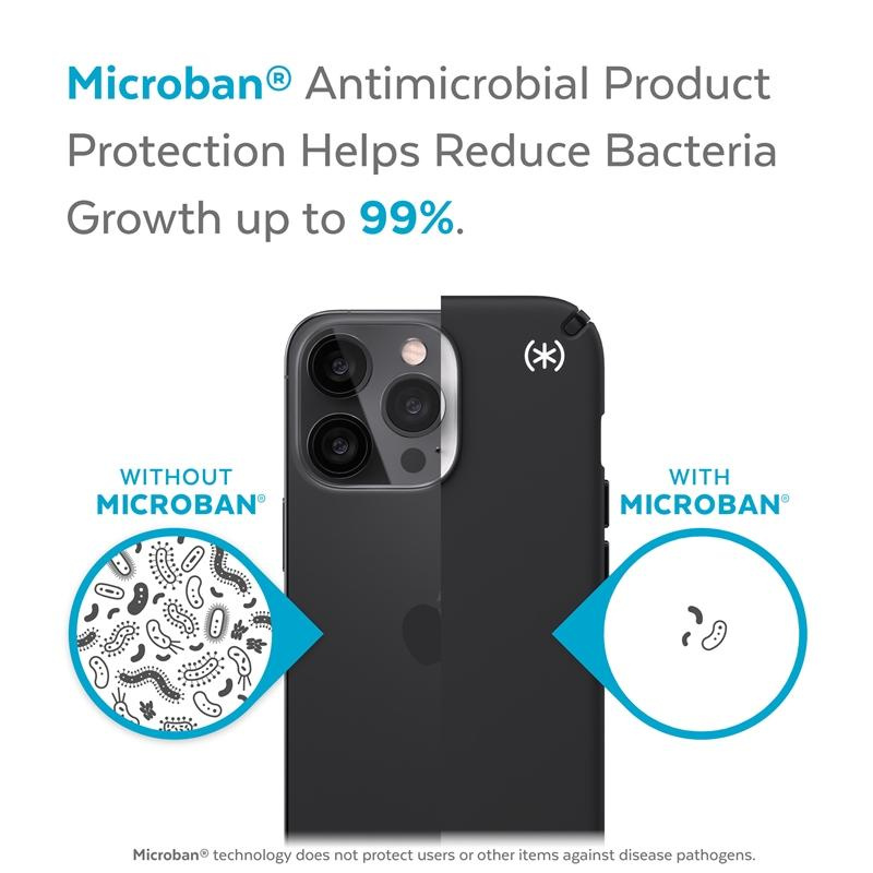 Speck's original Presidio2 Pro Series protective case also offers MICROBAN® antimicrobial protection (a world leader in antimicrobial solutions with a broad portfolio of over 25 approved technologies). The active ingredient built into the structure of the case stops 99% of the bacteria that accumulate on the surface of the case. MICROBAN® technology thus provides lifelong protection against stain- and odor-causing bacteria and works at the cellular level to keep the case clean.