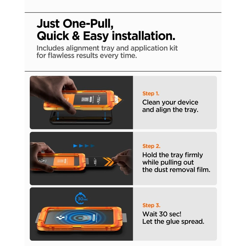 Glass installation is quick and precise thanks to the included innovative AlignMaster kit with automatic positioning, which eliminates bubbles and misalignment, guaranteeing a perfect fit from the first application. The glass does not affect the touch functionality, ensuring immediate and responsive screen response and smooth operation.