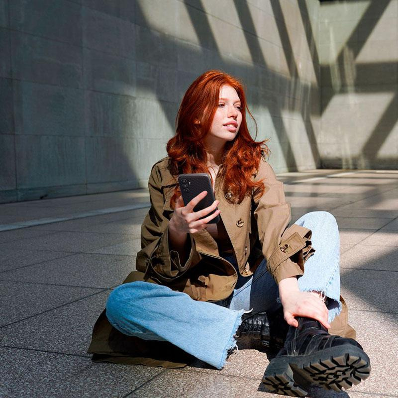 The cover is equipped with Air Cushion technology (air cushions in the corners) and a spider web structure inside to absorb shocks, protecting the smatphone from scratches and bumps.