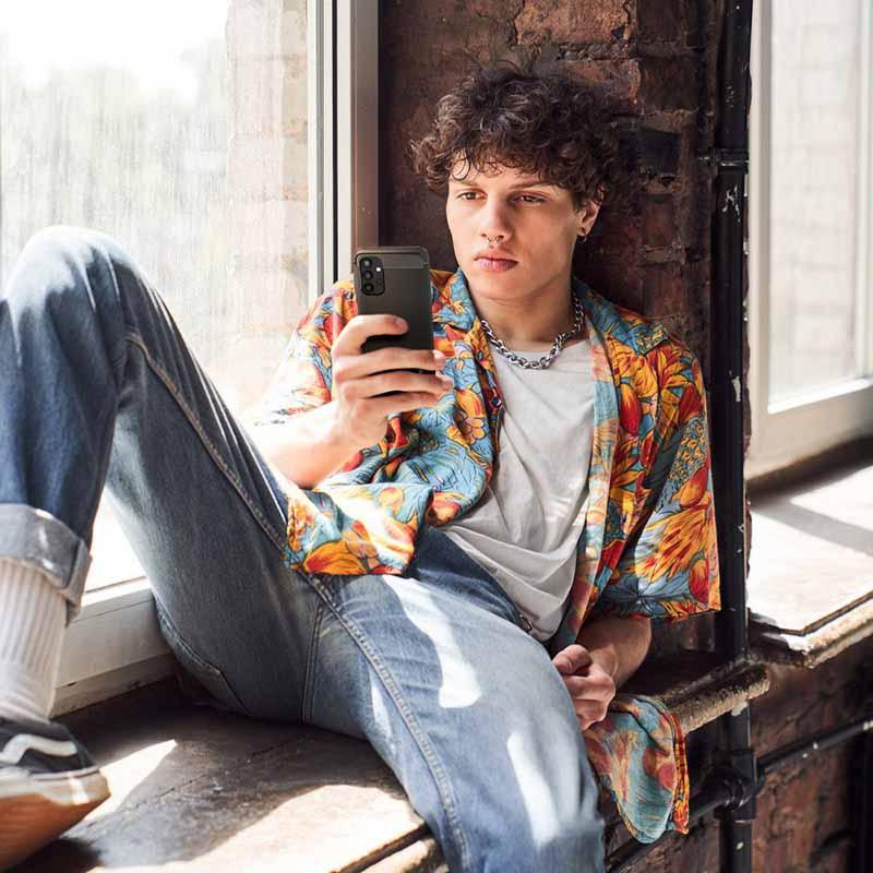 The cover is equipped with Air Cushion technology (air cushions in the corners) and a spider web structure inside to absorb shocks, protecting your smatphone from scratches and bumps.