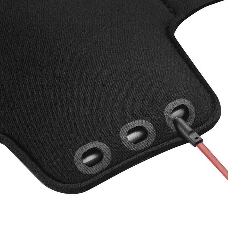 The wristband has an adjustable Velcro fastening shoulder strap, equipped with a discreet key pocket and special holes for headphones.