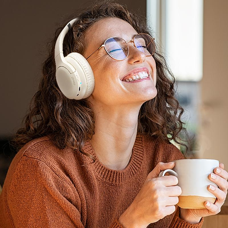 WEKOME M11 are modern over-ear headphones that combine advanced technology with elegant design. With Active Noise Cancellation (ANC) with up to 20 dB attenuation, they provide exceptional listening comfort by eliminating unwanted background noise. The headphones use the latest version of Bluetooth 5.3 + EDR, guaranteeing a stable and fast wireless connection and crystal clear sound.