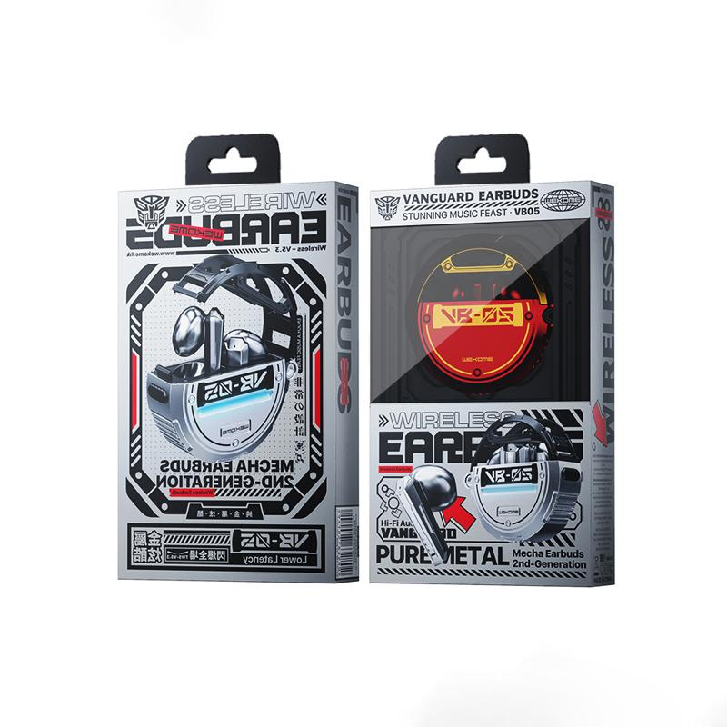 - WEKOME VB05 True Wireless dockless headphones with illuminated Mecha charging case. The headphones use a new version of Bluetooth 5.3 wireless technology that reduces latency, interference and improves battery life. The second gene