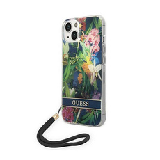 Guess Flower Cord - Etui avec dragonne iPhone 14 Plus (bleu)