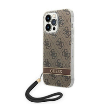 Guess 4G Print Cord - Etui avec dragonne iPhone 14 Pro (marron)