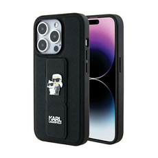 Karl Lagerfeld Gripstand Saffiano Karl & Choupette Pins - Coque iPhone 13 Pro (noir)