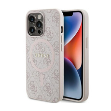 Guess 4G Collection Cuir Logo Métal MagSafe - Etui iPhone 15 / 14 / 13 (rose)