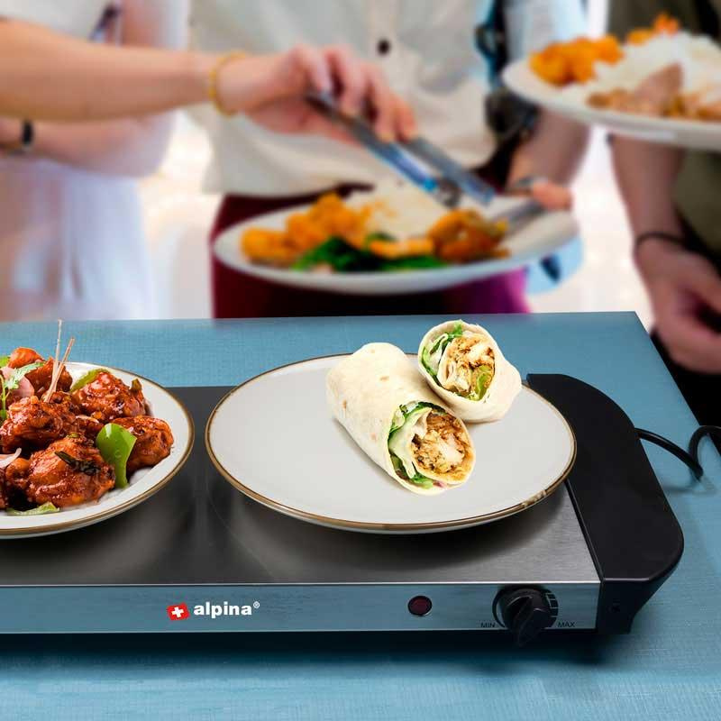 - Le chauffe-buffet d'Alpina est parfait pour les dîners, les fêtes ou les événements d'entreprise.