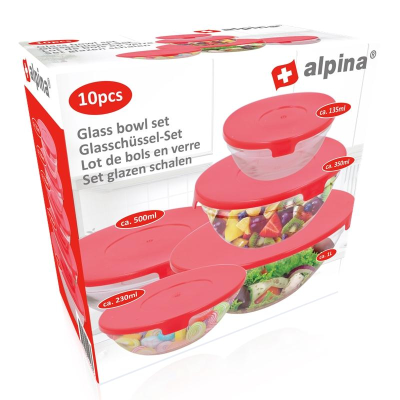 Alpina - Set de bols en verre avec couvercles 5pc.