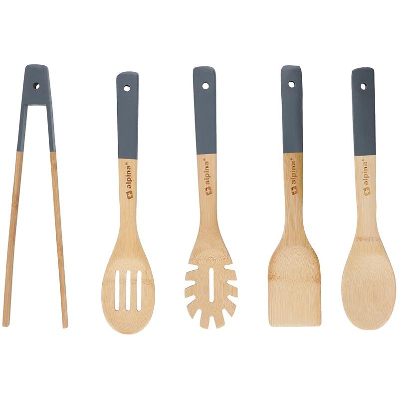 Alpina - Set d'ustensiles de cuisine en bambou 5 pièces. (marine)
