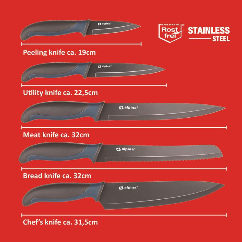 The knives in the set include: