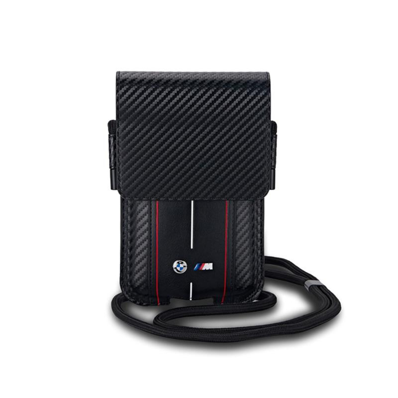 BMW Carbon Red Stripes Wallet Bag is an exceptional class and quality phone bag signed by one of the world's most popular car manufacturers. The carbon motif provides an exclusive touch and attracts attention. The collection impresses with the centrally positioned narrow stripes in the colours of the M Performance package and the BMW and M Performance brand logos. The high-quality nylon fabrication provides very good protection for the device while it is being carried, and the eco leather finish lends the entire bag an elegant appearance. The bag has a long, adjustable shoulder strap to ensure comfort when carrying it. The interior of the bag conceals a pocket where you can easily store your phone, while a small handy pocket for storing payment cards has been located on the outside of the bag. Product features: - Full device protection - Adjustable strap - Shock, impact and scratch protection - Carbon motif - BMW and M Performance logo - Material: nylon / eco leather - Dimensions: 18 x 11 x 2.5 cm - Number of compartments: 1 small, 1 large - Bag officially licensed by BMW