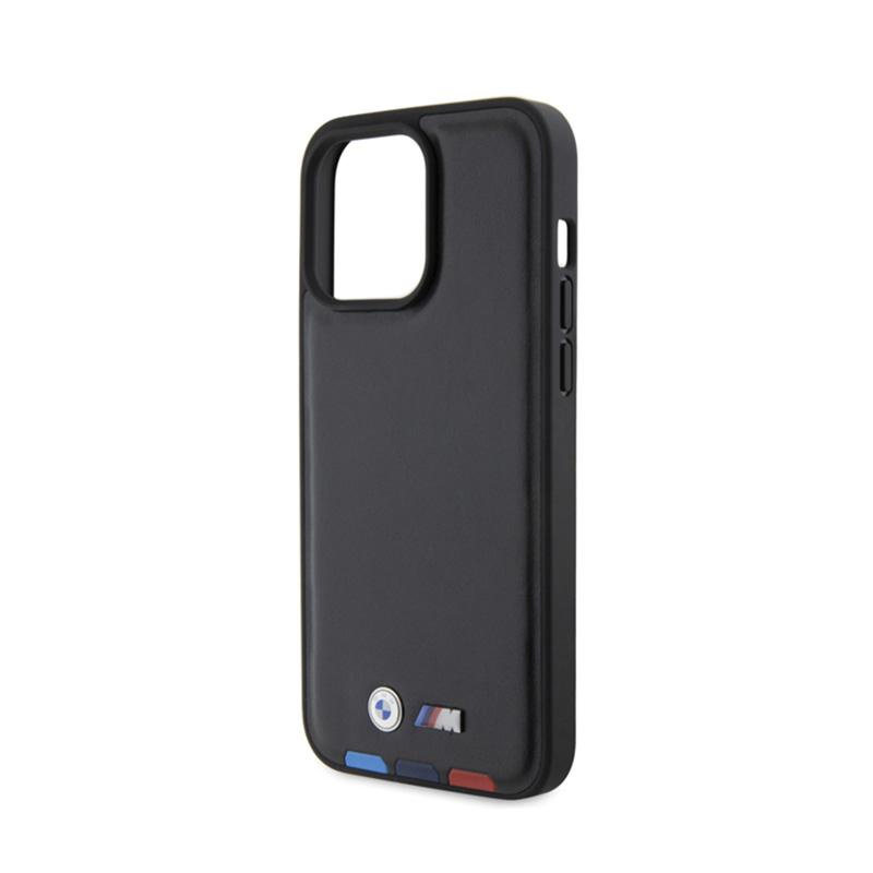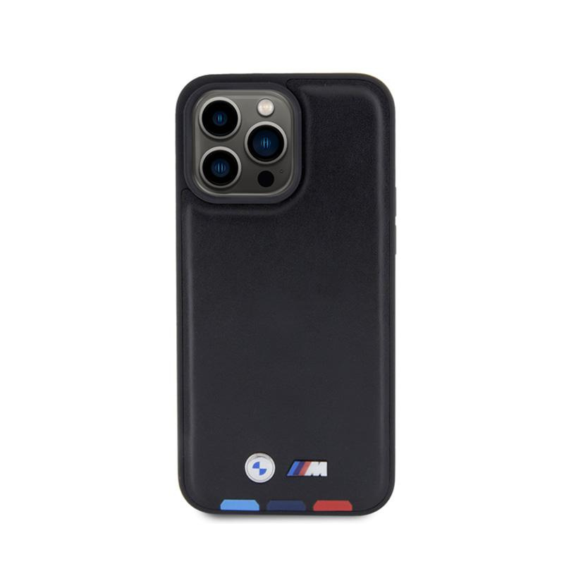 BMW Leather Hot Stamp Tricolor - Étui pour iPhone 15 Pro Max (noir)