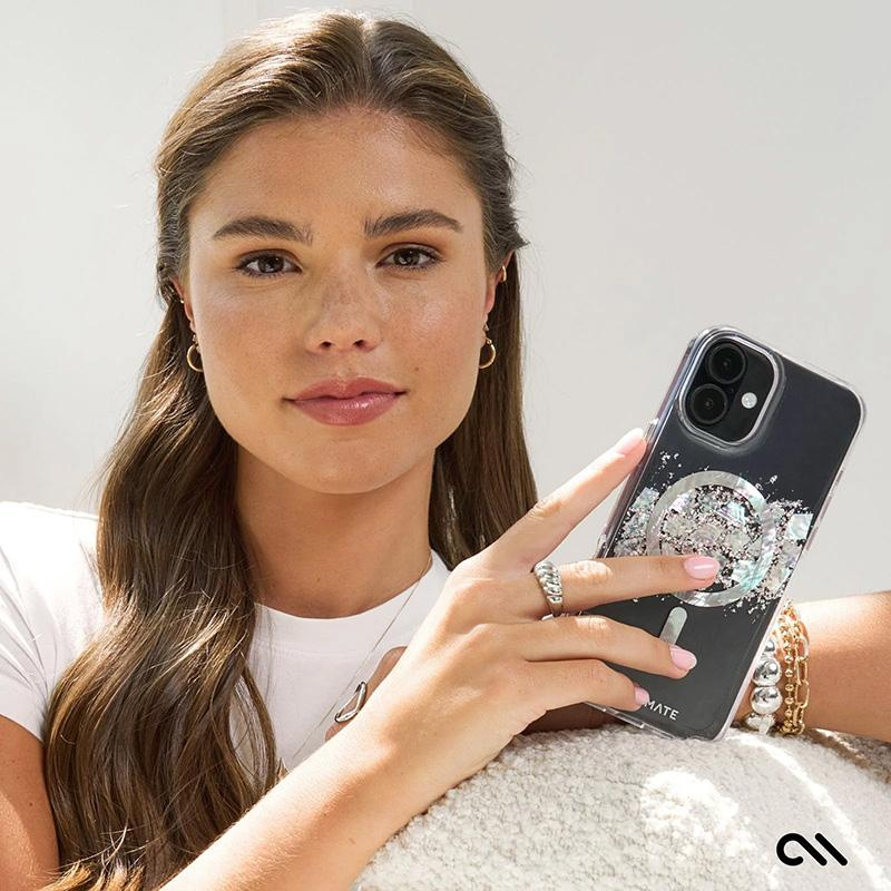 Pretty in pearls— the Touch of Pearl MagSafe Phone Case for the iPhone 16 features genuine Mother of Pearl elements with an irresistible pearlescent design. We know how much you love your phone, so feel confident knowing it’s safe with 12-foot drop protection while strong built-in magnets allow for easy MagSafe accessorizing and charging.