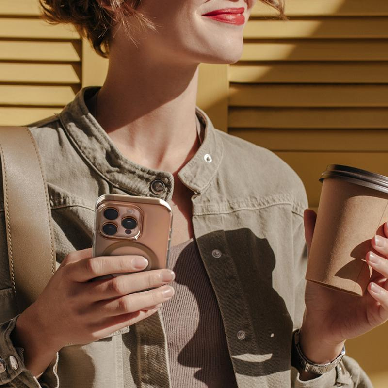 The Clear MAG Pro case is made entirely of ultra-clear, 2mm-thick polycarbonate. Its minimalist design makes it feel almost invisible in your hand, and the phone retains its elegant appearance without adding unnecessary bulk. Metal buttons on the sides of the case also provide smoother clicks and volume control.