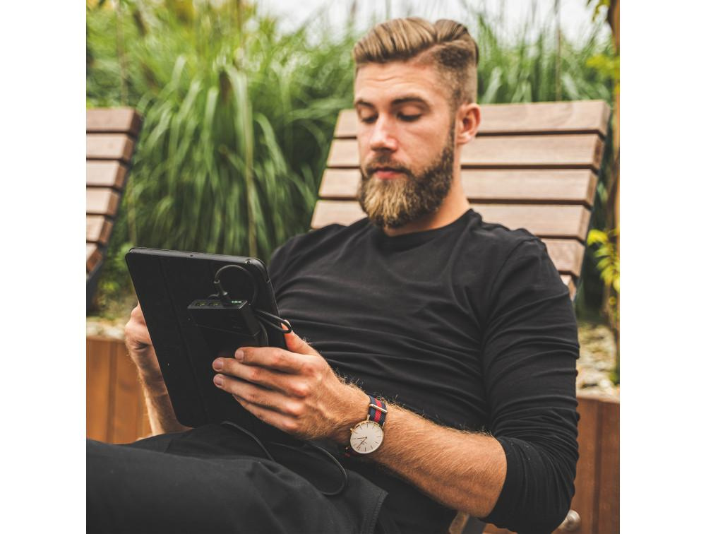 Le design extrêmement élégant et robuste permet d'utiliser le power bank confortablement et en toute sécurité dans toutes les conditions