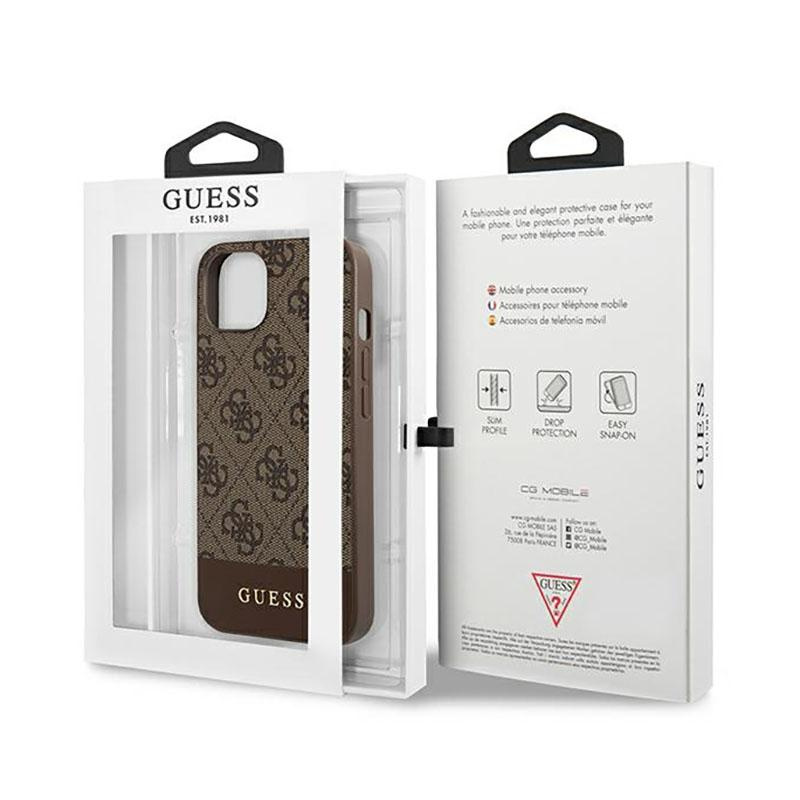 Guess 4G Bottom Stripe Collection - Coque pour iPhone 13 (marron)