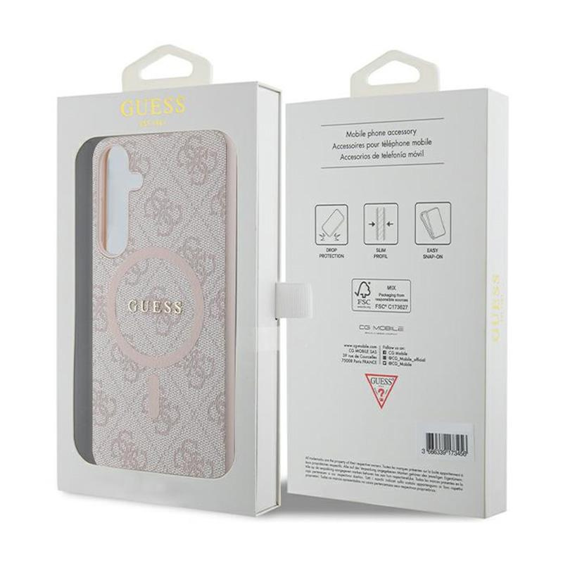 Guess 4G Collection Cuir Metal Logo MagSafe - Étui Samsung Galaxy S24+ (rose)