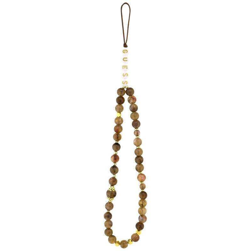 The stylish beaded keychain with the letters that make up the name "GUESS" perfectly matches the colors of the case, giving it a fashionable and unique character.