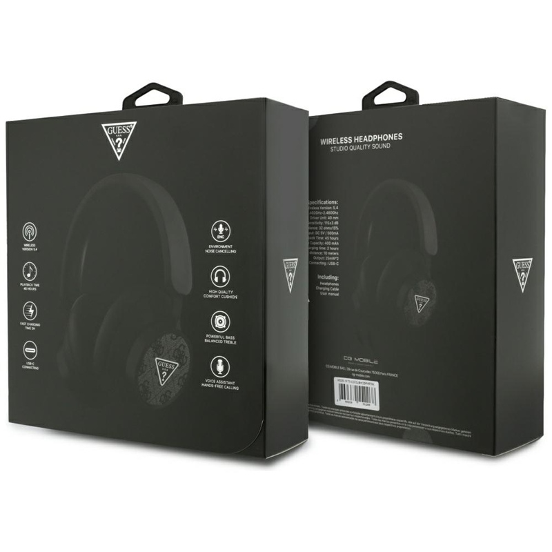 Guess 4G Triangle Logo - Bezdrátová sluchátka přes uši Bluetooth V5.4 ENC (Černá)