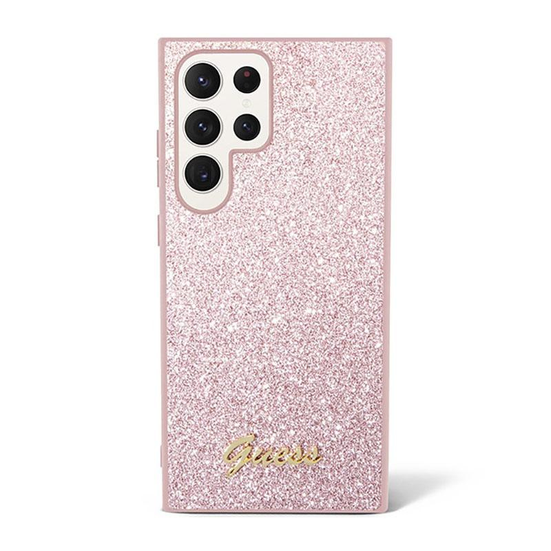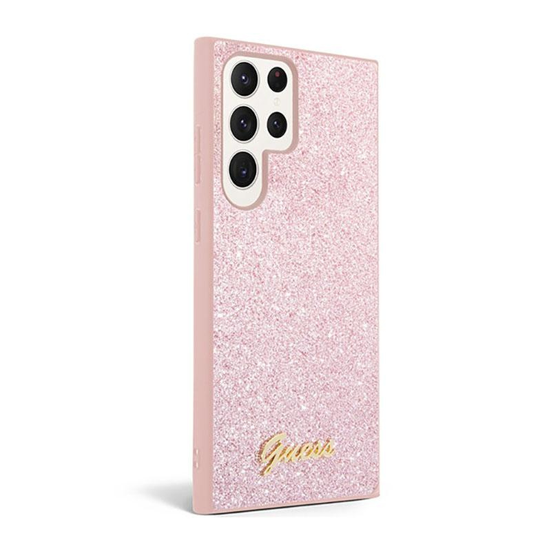 Guess Glitter Flakes Metal Logo Case - Samsung Galaxy S23 Ultra Case (pink)
