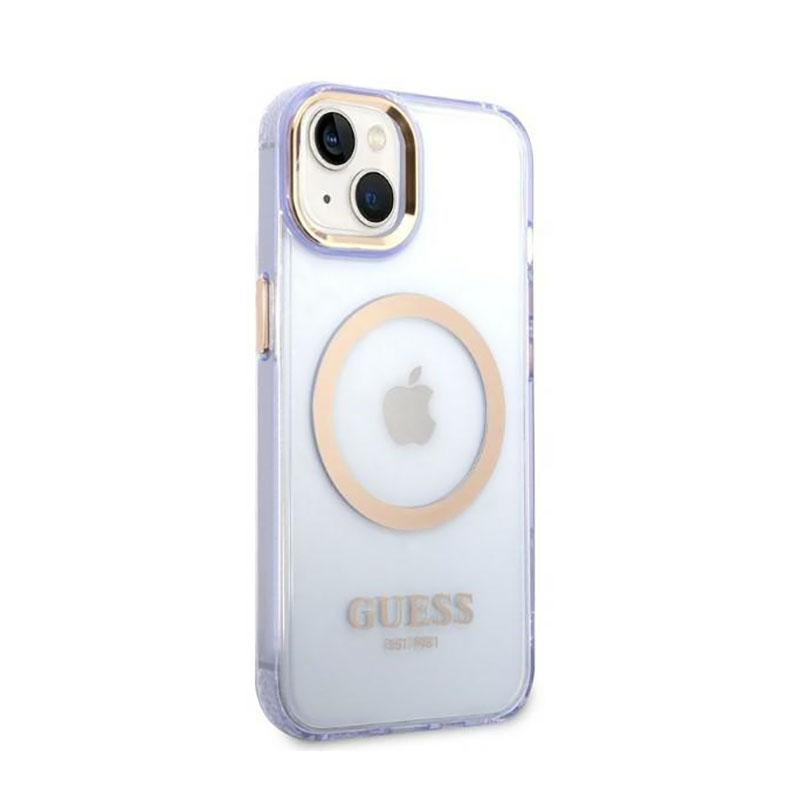 Guess Gold Outline Translucent MagSafe - Case for iPhone 14 (Purple)