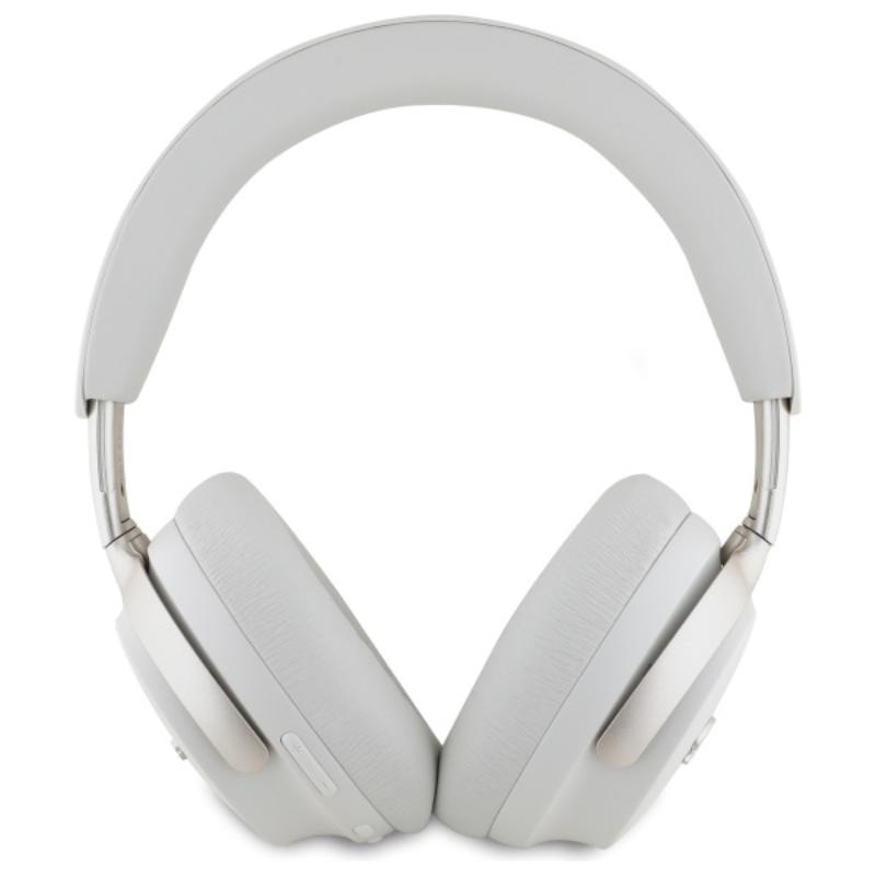 The beige color gives them a stylish, minimalist look that is perfect for any occasion. The headphones are decorated with the characteristic Guess logo, which emphasizes their luxurious character.