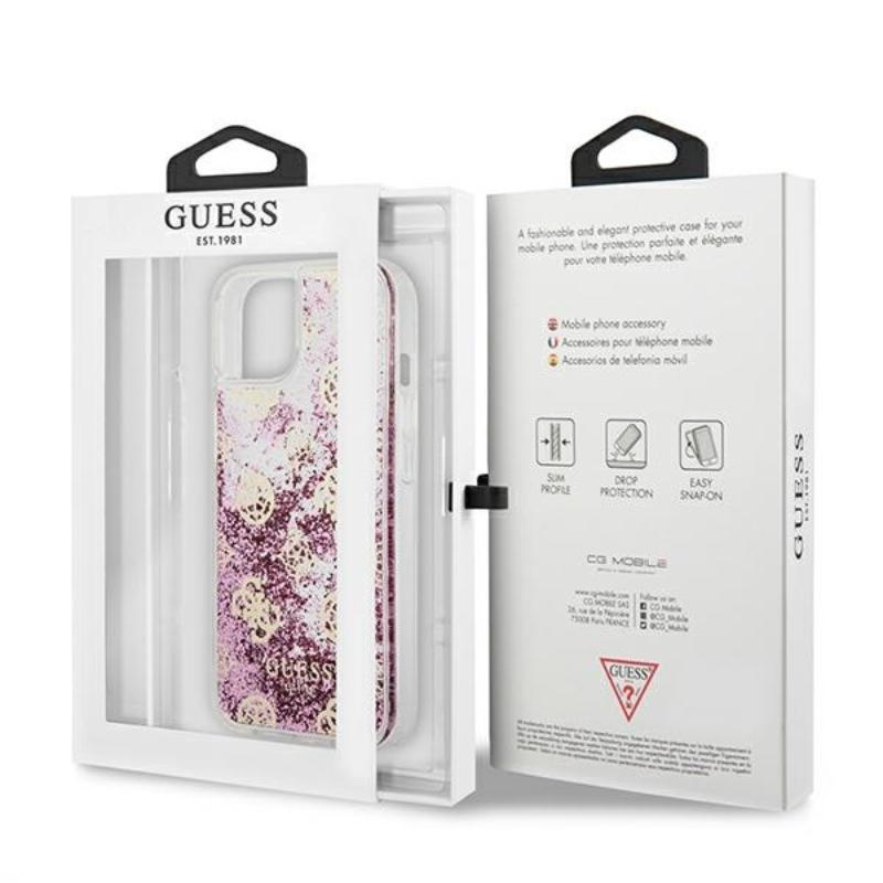 - L'étui Guess Peony Liquid Glitter est conçu pour protéger votre iPhone des rayures. Il est fabriqué en TPU durable, très transparent et fin. Le smartphone repose en toute sécurité dans un design parfaitement conçu qui le protège de l'arrière de l'appareil