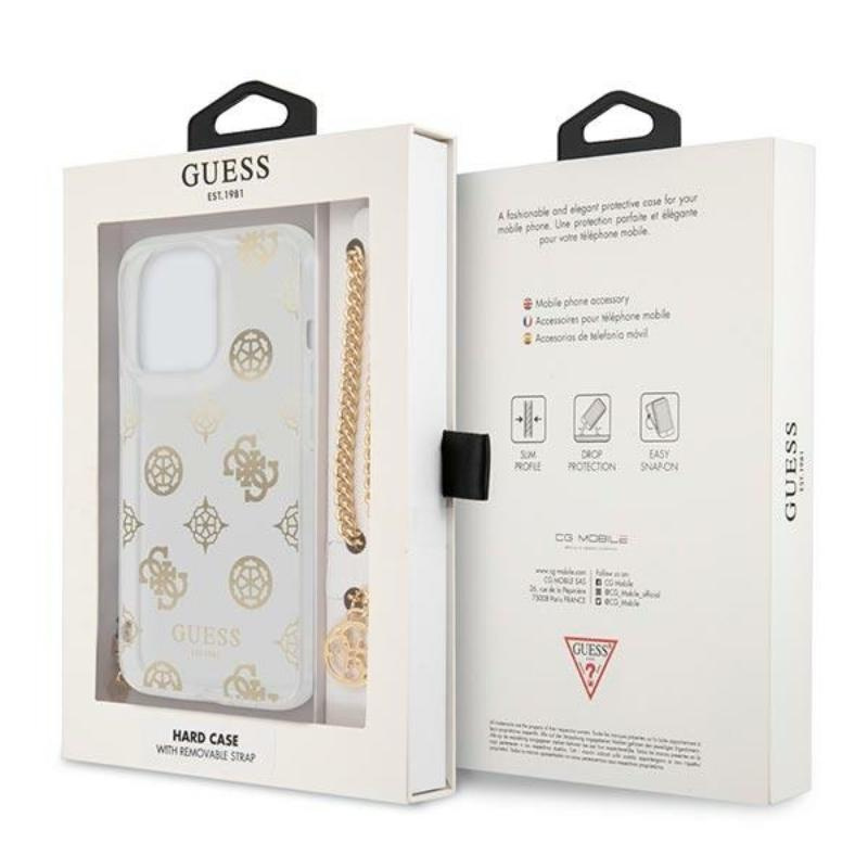 - L'étui Guess Peony Chain Handle est fabriqué en TPU durable, très transparent et fin. Le smartphone repose en toute sécurité dans un design parfaitement conçu qui le recouvre au dos et sur les côtés sans en gâcher l'esthétique de quelque manière que ce so