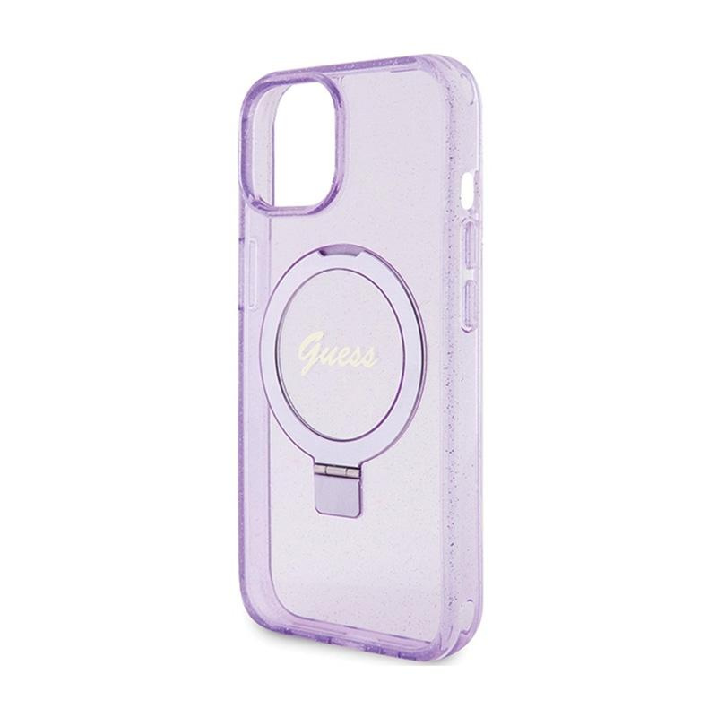 Guess Ring Stand Script Glitter MagSafe - iPhone 15 Plus Case (Purple)