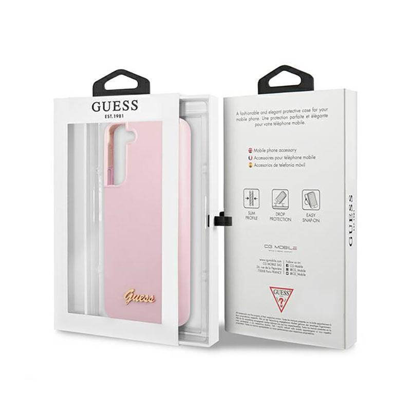 Guess Silicone Script Metal Logo - Cover for Samsung Galaxy S22+ (Pink)
