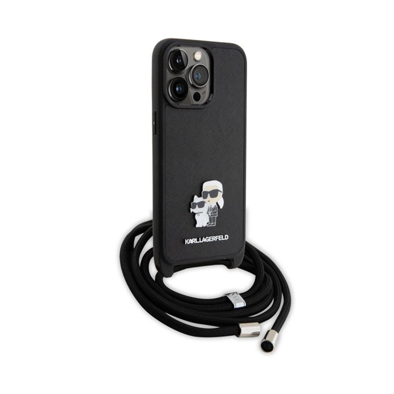 Karl Lagerfeld Crossbody Saffiano Metal Pin Karl & Choupette - Case for iPhone 15 Pro Max (Black)