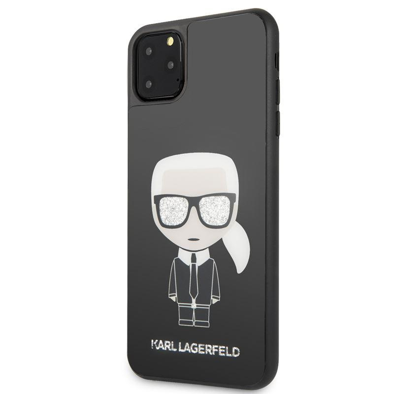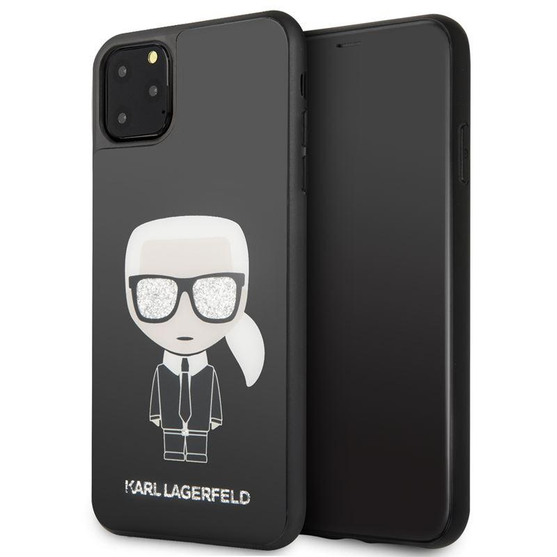 Karl Lagerfeld Double Layer Glitter Tempered Glass - Coque pour iPhone 11 Pro Max avec dos en verre (Noir)