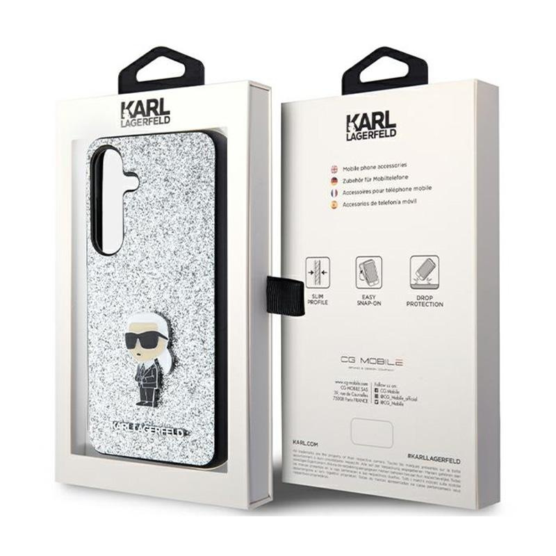 Karl Lagerfeld Fixed Glitter Ikonik Logo Metal Pin - Samsung Galaxy S24 Case (Silver)