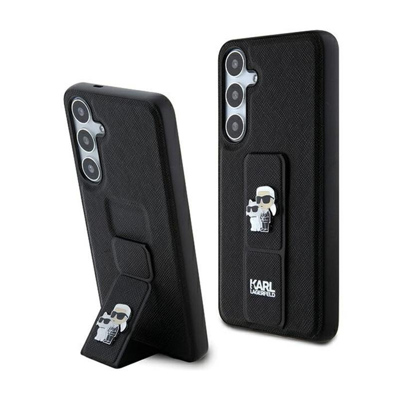 Karl Lagerfeld Gripstand Saffiano Karl & Choupette Pins - Samsung Galaxy S24+ Case (black)