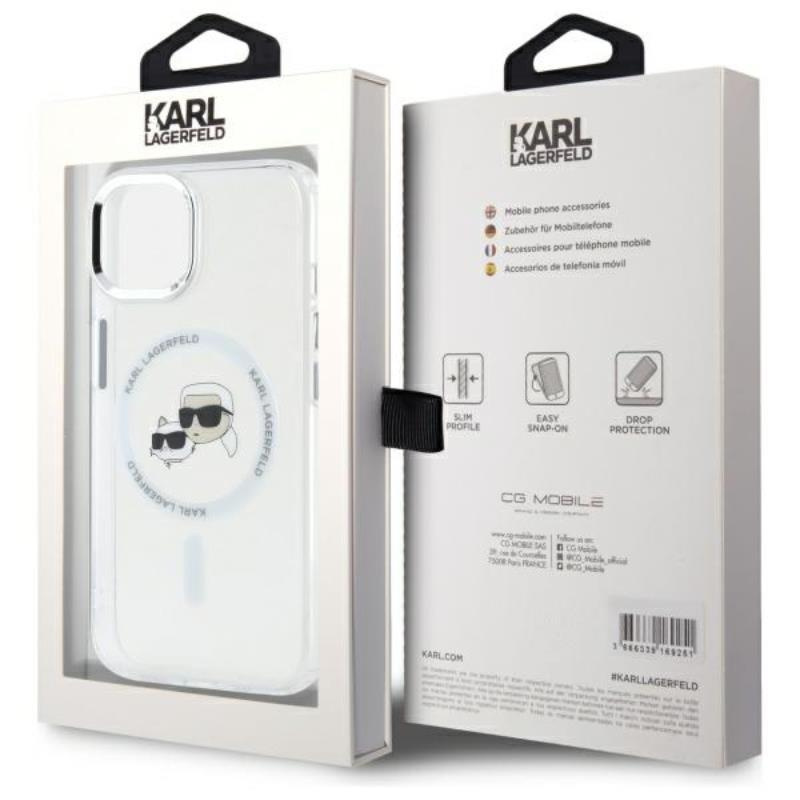 Karl Lagerfeld IML Metal Karl & Choupette Head MagSafe - Case for iPhone 15 (White)