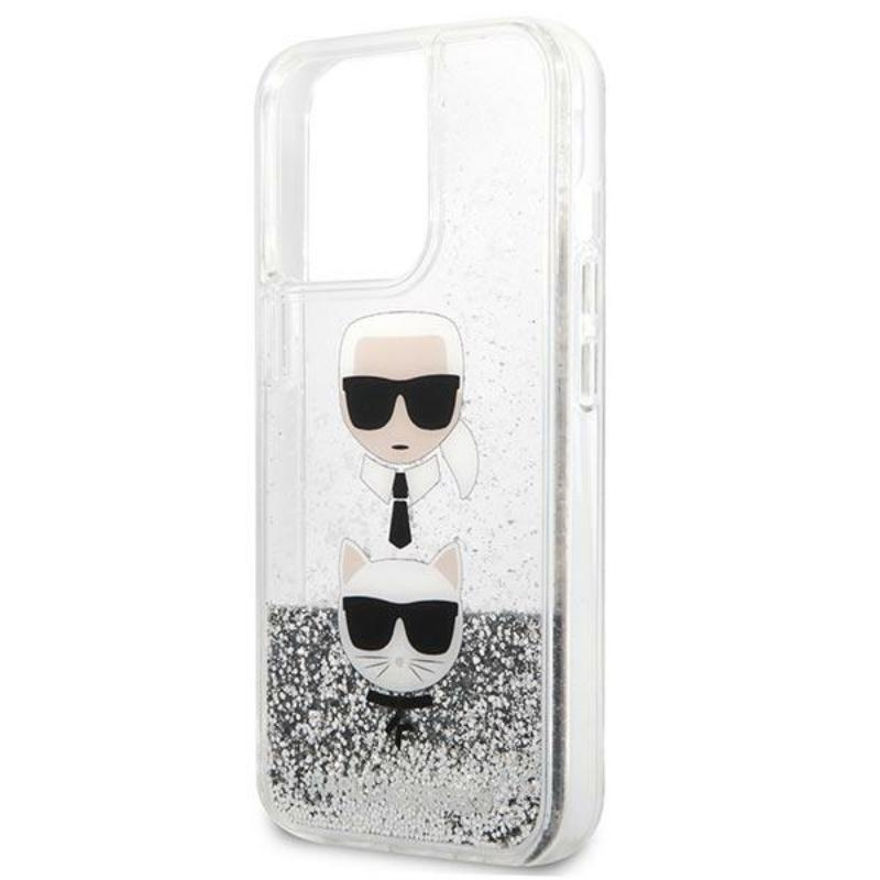 Karl Lagerfeld Liquid Glitter Karl & Choupette Head - Case for iPhone 13 Pro (Silver)
